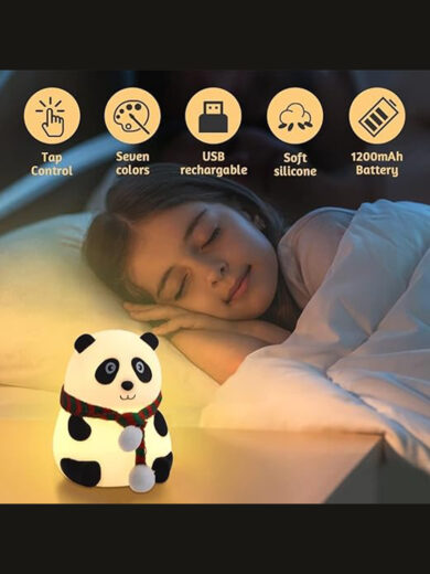 Silicone Panda Night Light for Kids | 7-Color LED Changing Lamp |Adorable Room Decor & Gift for Toddlers, Teens, & Valentine's Day Present|Soft BPA-Free Nightlight| Multicolour