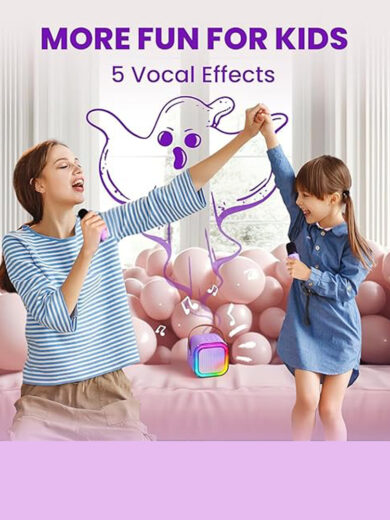 Speaker Bluetooth Mic Kids Singing Dynamic Lights | USB-C Rechargeable Wireless Portable | Home Outdoor Travel Ages 3 4 5 6 7 8 9+ Girl Boy Kids Toddler