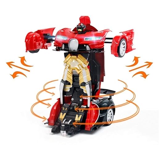 Converting Car to Robot, Robot to Car Automatically,Tra Toy, with Light and Sound for Kids (Red and Blue)